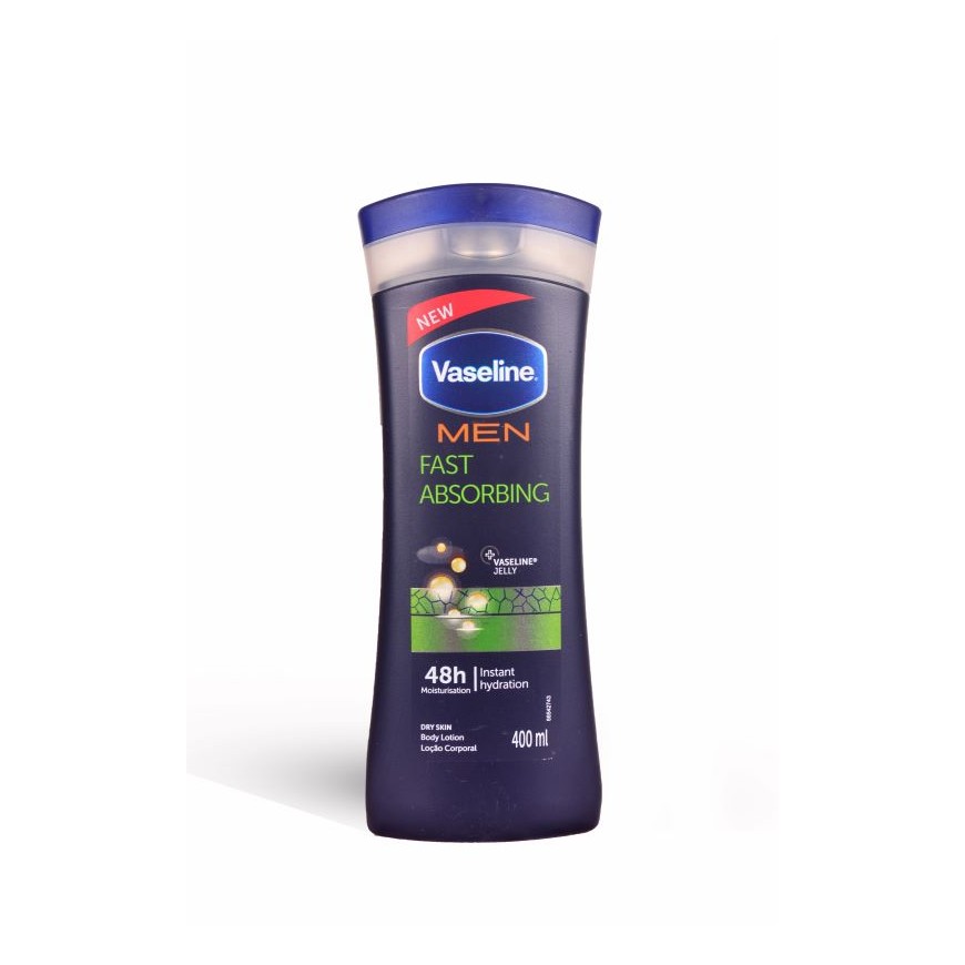 Vaseline's Healing Moisture fast-absorbing hand and body lotion is absorbed in 15 seconds to deeply moisturize men's dry skin.